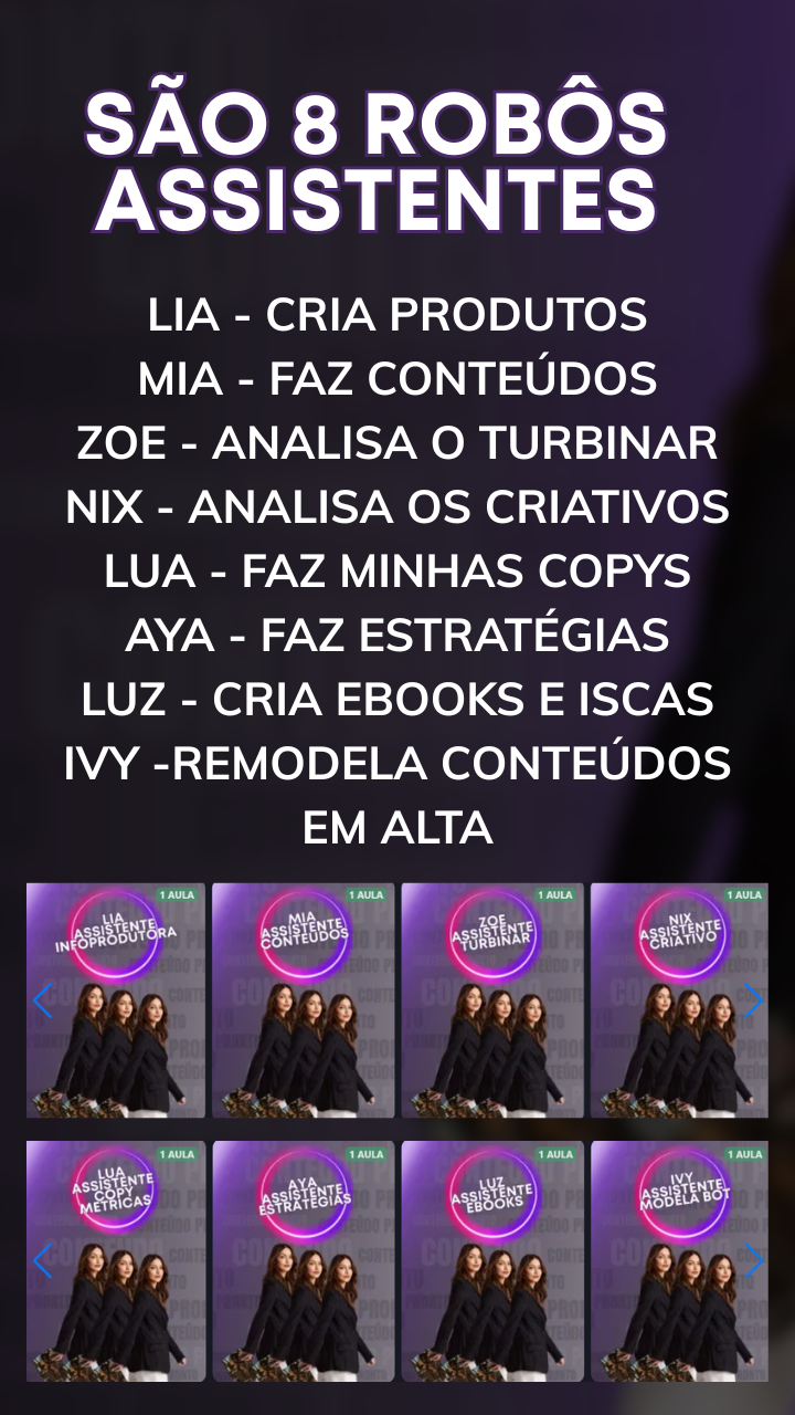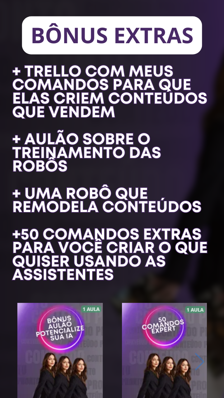 - CONTEÚDO PRONTO TODO DIA (Minhas 8 Robôs Assistentes) + 15 TREINAMENTOS COMPLETOS: Acesso completo